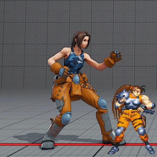 The 9th color for Akira Kazama's default costume in Street Fighter V: Arcade Edition is based on Linn Kurosawa's uniform, with Akira's pants being colored the same bright orange as Linn's, her tank top being metallic blue to parallel Linn's chest armor and her hair dyed a dark brown shade matching Linn's.