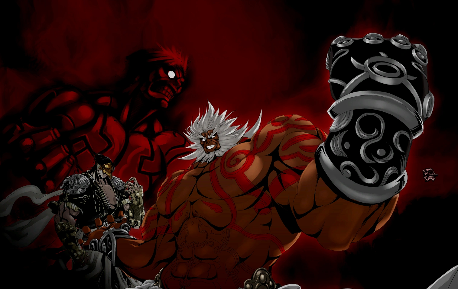 Sagat from Street Fighter | Scroll the image to the top-right corner to see Sagat performing a Tiger Uppercut upon a Doji Soldier. |