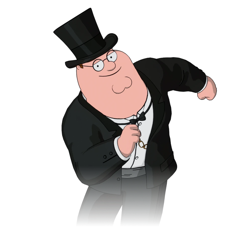 Peter Griffin "Fancy" style is a reference to a gag in the episode: 'Seahorse Seashell Party" where Meg says that her family always acts like they're better than her, then cutting to Peter, Lois and Chris wearing fancy outfits.