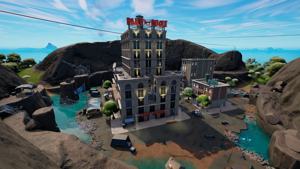 The Daily Bugle was a Named Location in Fortnite that was added in Update v19.00. It is the first Named Location to have 3 words in its name. The Daily Bugle is made of a section of New York City inside a dormant Volcano. There are 3 buildings, one being the main Daily Bugle Building, alongside two apartments. Framed pictures of Green Goblin, X-Men, Loki and Miles Morales can be seen on the newspaper textures.