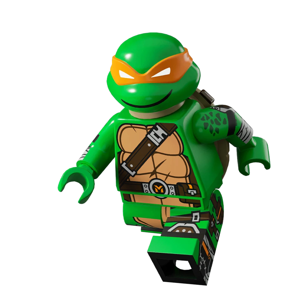 Michelangelo is the fourth Outfit in the "TMNT" set. He has an original design complete with a number of belts and strap sand pouches. He has an initialised belt buckle like in the 1987 animated series. He has the darkest skin tone out of all the Turtles.