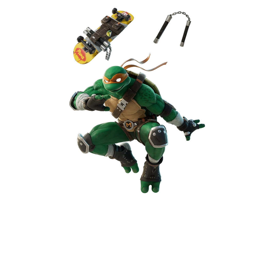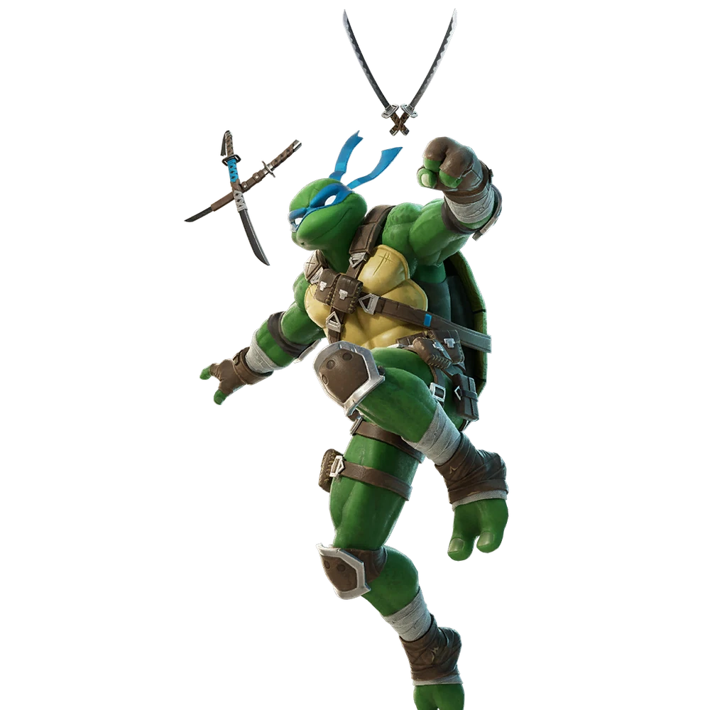 The Turtle Weapons are Melee weapons in Fortnite, first added on February 9th, 2024. They are a hybrid of a close range hack-and-slash weapon and an air ambush weapon. They have a unique octagonal reticle (reminiscent of a turtle shell). When attacking and targeting an opponent in range, the reticle becomes the colour of the respective Turtle's headband. Each Mythic TMNT weapon has a standard attack that can be held to string a chain of attacks together. Each hit deals different amounts of damage and thus the weapon does not have a consistent damage per second. They also possess an air dash that will allow the player to quickly launch themselves into the air a short distance. It can also be used on the ground. This dash also deals damage if it hits an opponent, but has a very small cooldown afterwards.