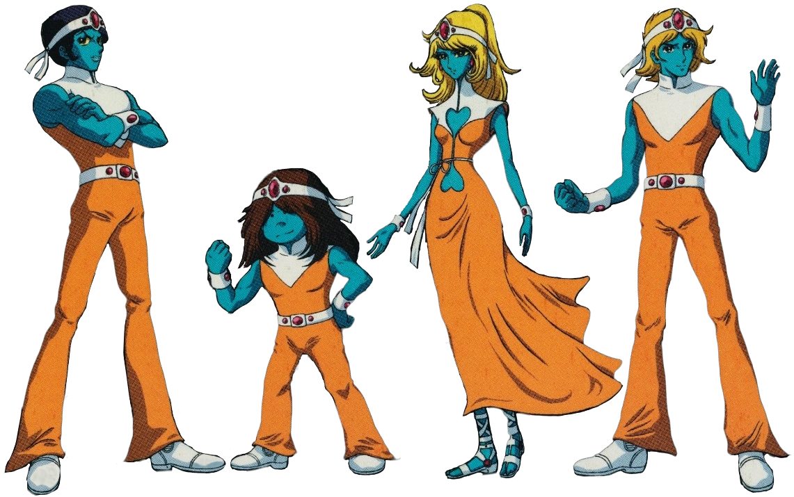 From left to right: Octave, Baryl, Stella, and Arpegius, the main characters of Interstella 5555.
