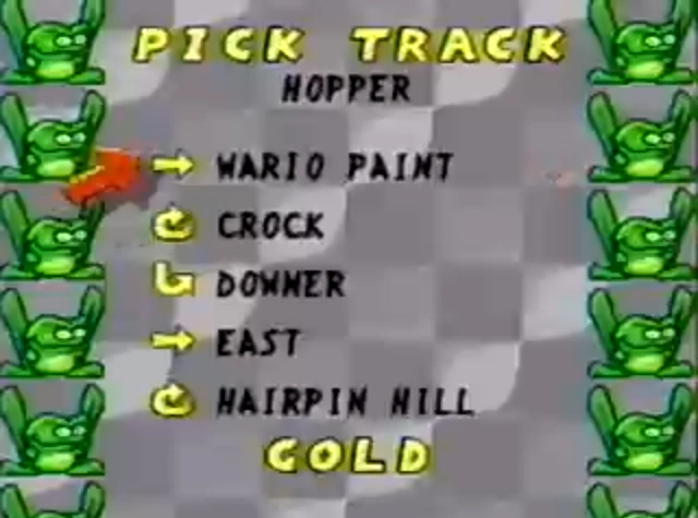 Track selection in Uniracers, with "Wario Paint" selected.