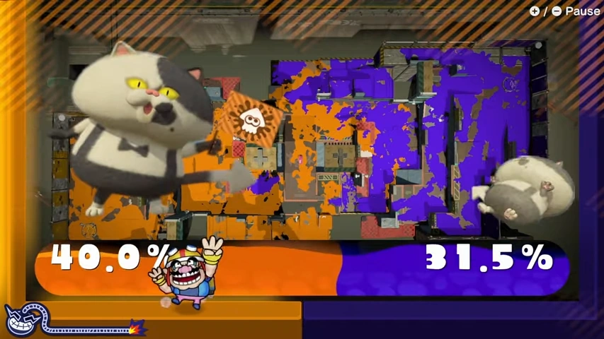 One of 9-Volt's microgames is based on Splatoon 2. It specifically shows the end of a Turf War with Judd and Li'l Judd tallying the results and the player must stand in front of the side of the team that inked the most turf based on the image on the background. After a while the percentages of covered turf is revealed and if the player guessed correctly the microgame is won.